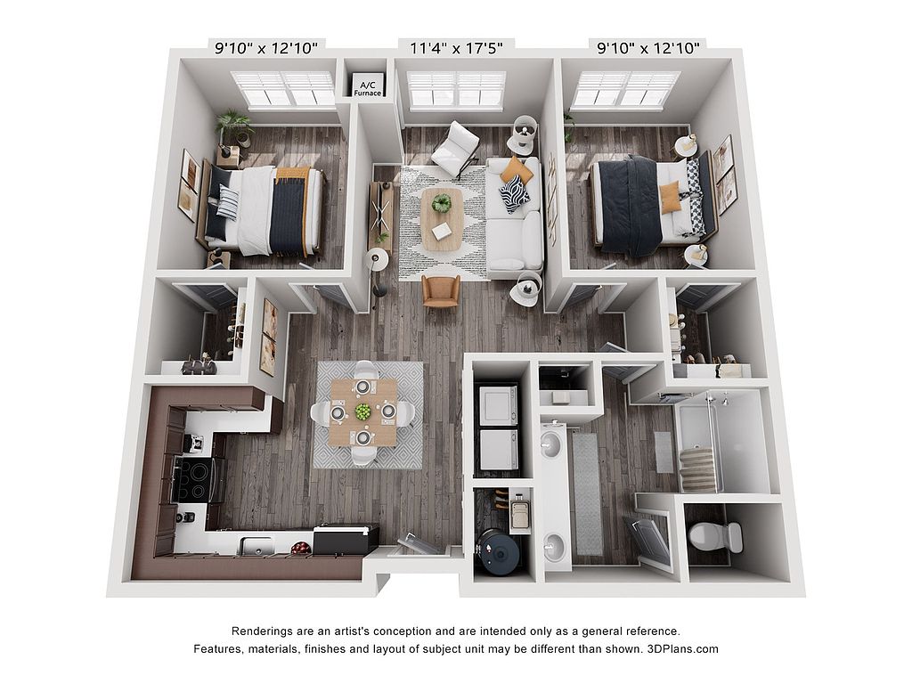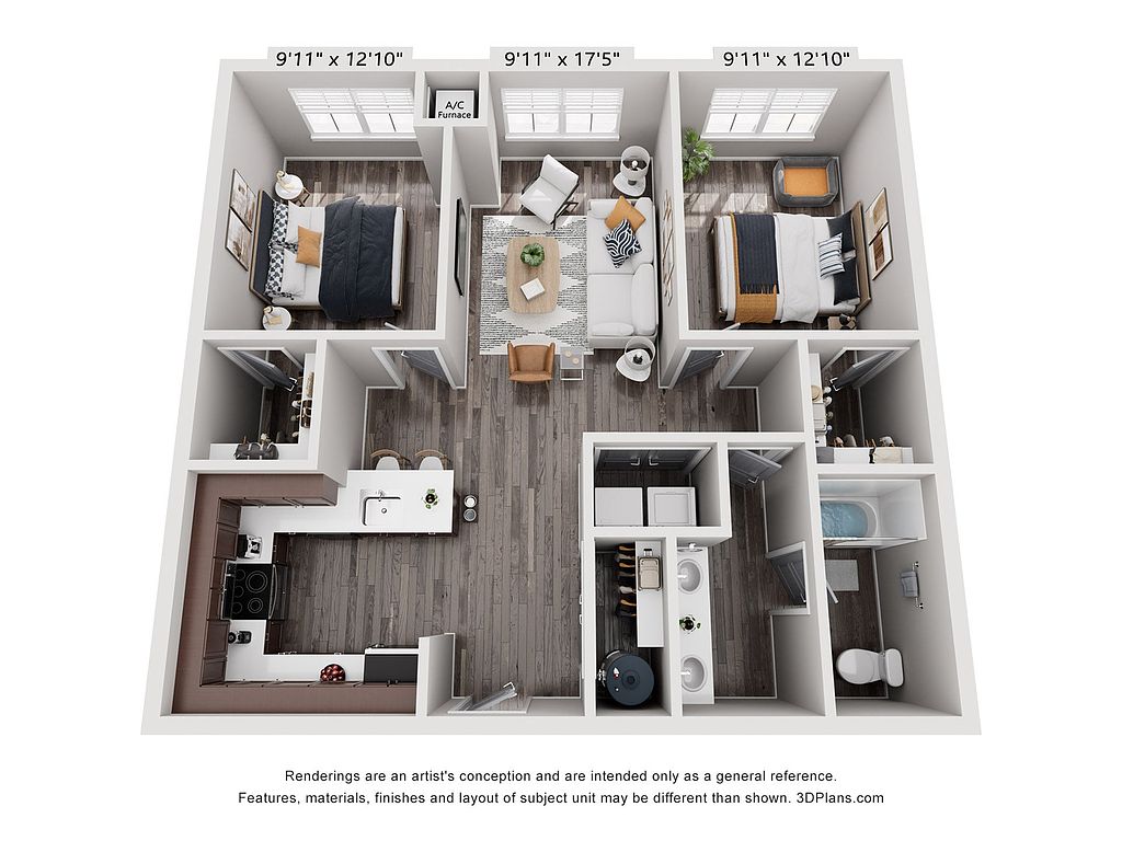 - Air Conditioning: Air conditioning (forced air in 2-bedroom units)