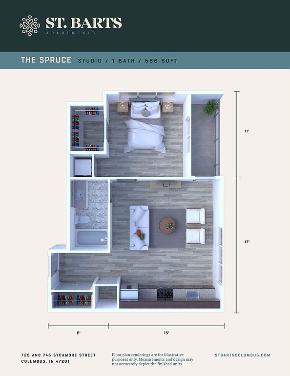 Located in the heart of Columbus, Indiana, St. Barts Apartments is located and designed for those that want to live, work and play.