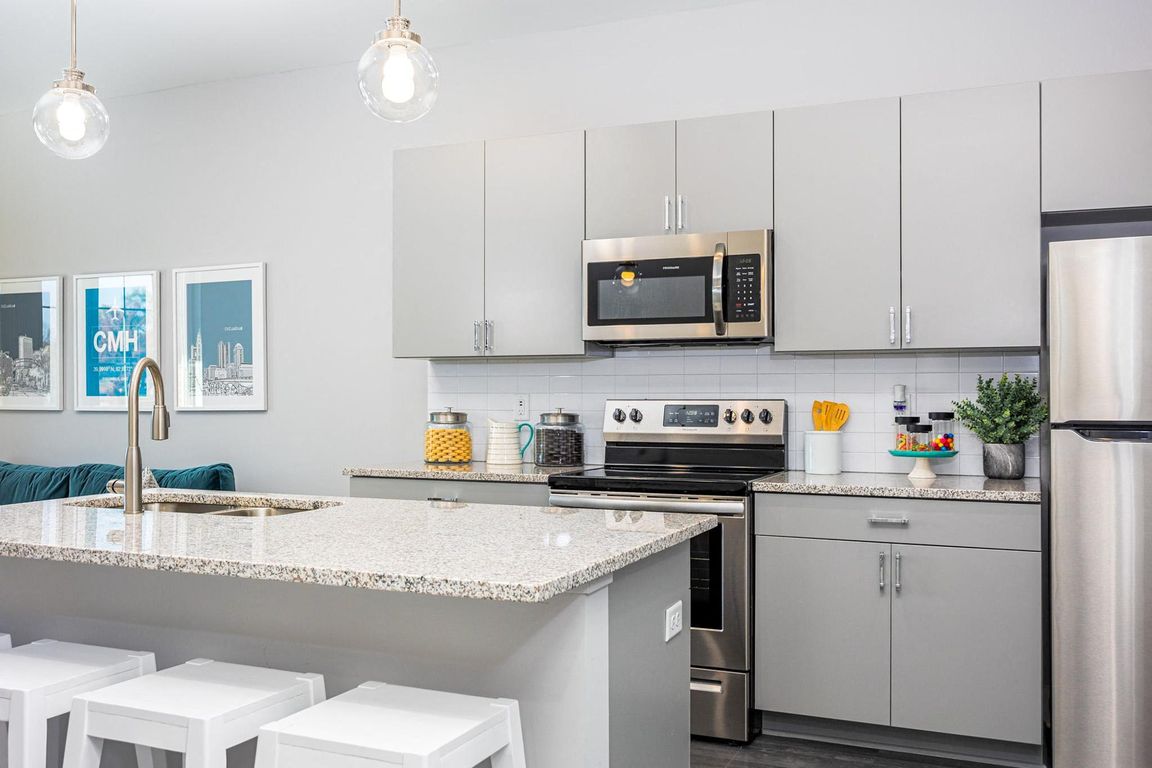 - Neutral Grey Color Scheme With Modern Cabinetry