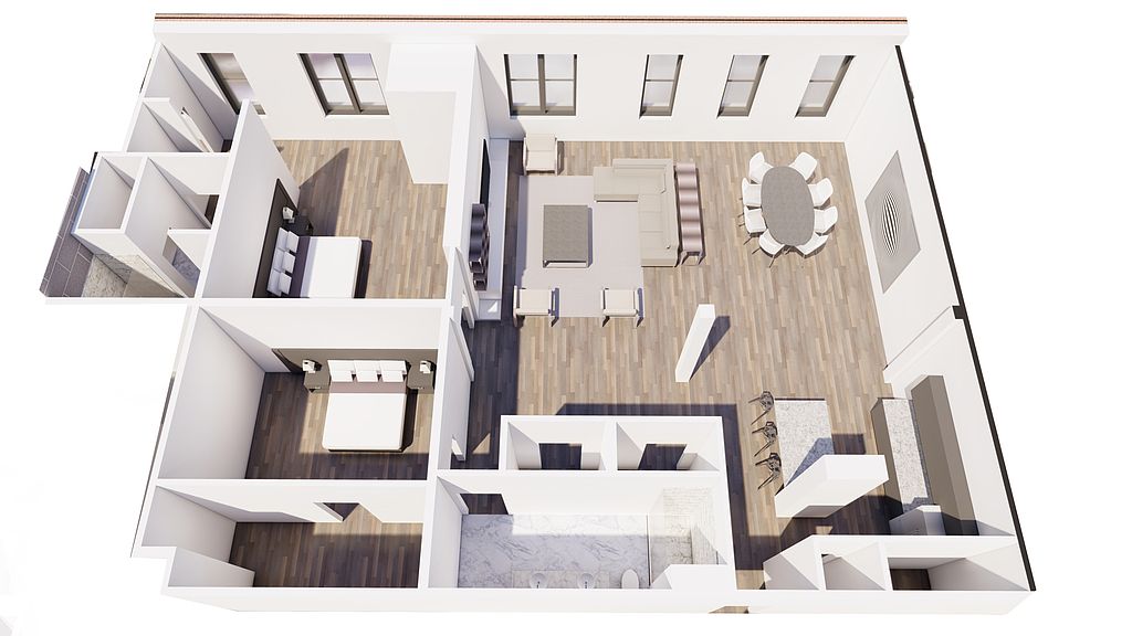 Every unit has unique custom cabinetry with sleek and modern European stylized designs; these are topped with stunning quartz or Corian countertops to round out the premium look and feel for every cooking experience. Combining the historic nature of the building with premium modern finishes, there are beautiful sections of exposed and restored brick throughout the community and featured in most of the homes. Hyper-modern tile design in the bathrooms gives a beautiful, extremely clean, and durable product that will be a highlight of your home. These features and more are highlighted with tremendous amounts of natural light from the over-sized windows as well as the multitude of beautiful LED lights to help set the perfect tone for every occasion.