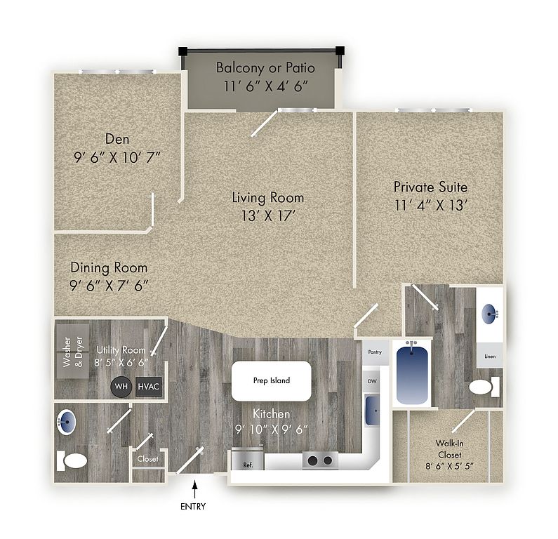 - Carpet: Woodgrain flooring and lush carpet options