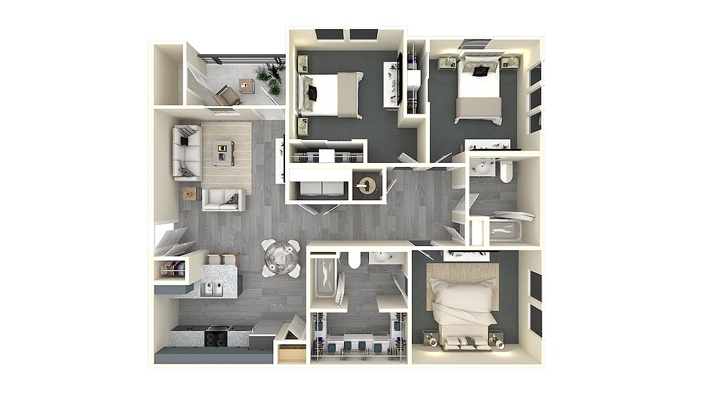Private patio or balconyPet parkSports courtFully equipped fitness centerSpacious walk-in closets