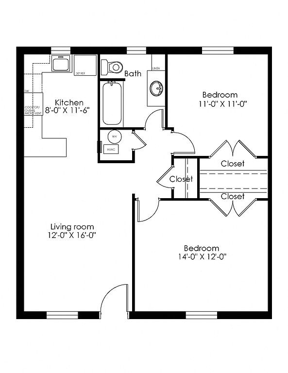 Two Bed, One Bath, 825 square feet.