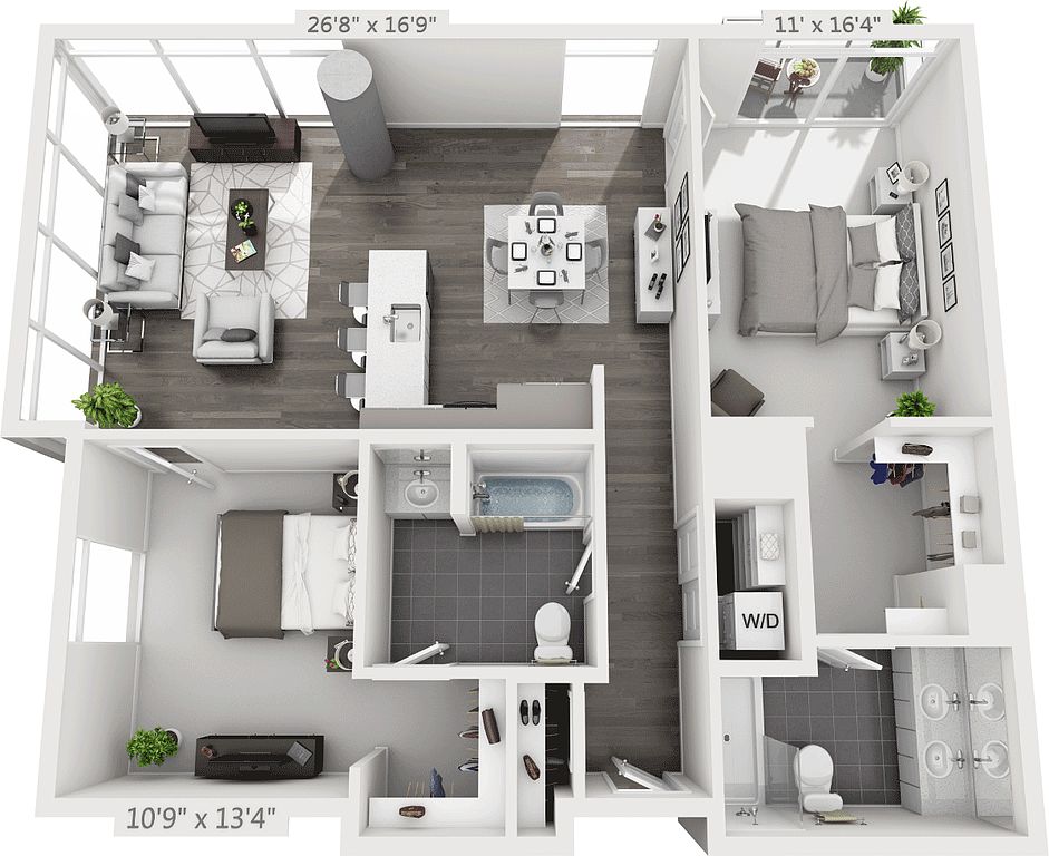 Yes, Eviva on Cherokee has in-unit laundry for some or all of the units.