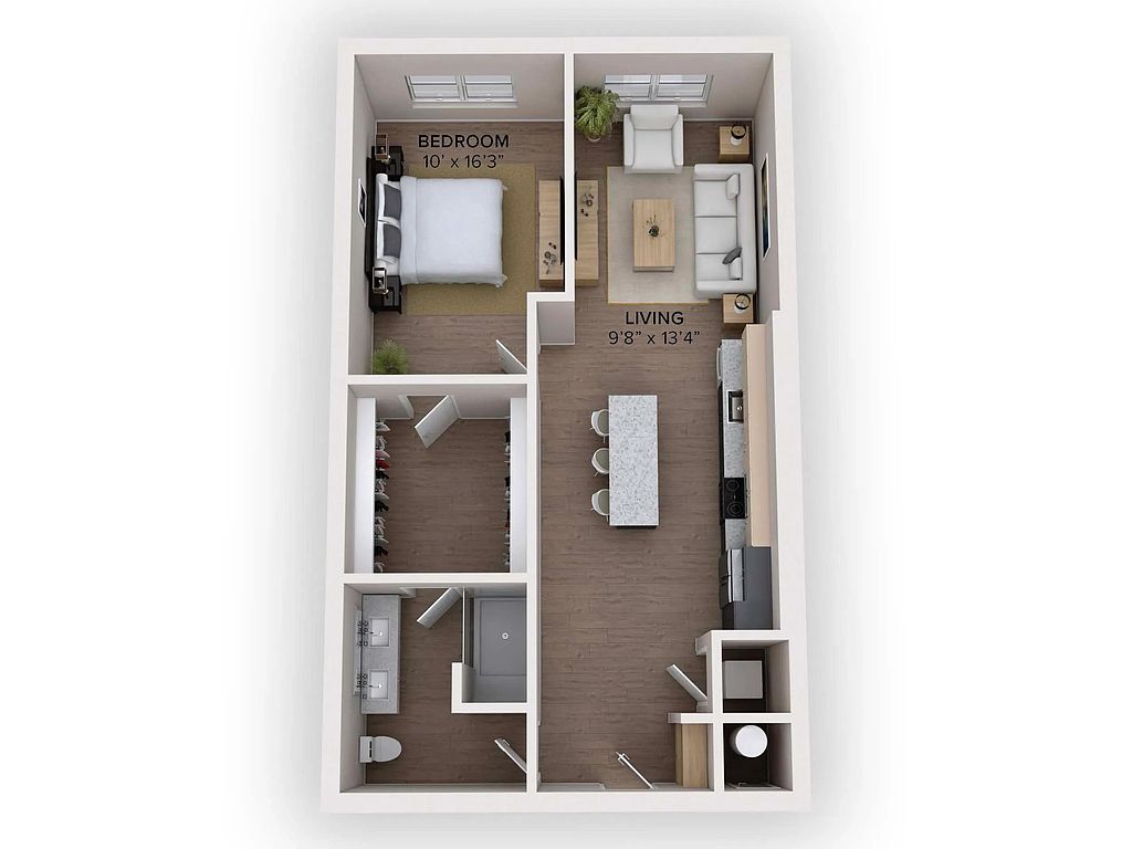 - Hardwood Floor: Wood-style plank flooring