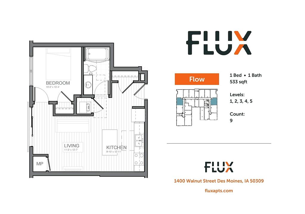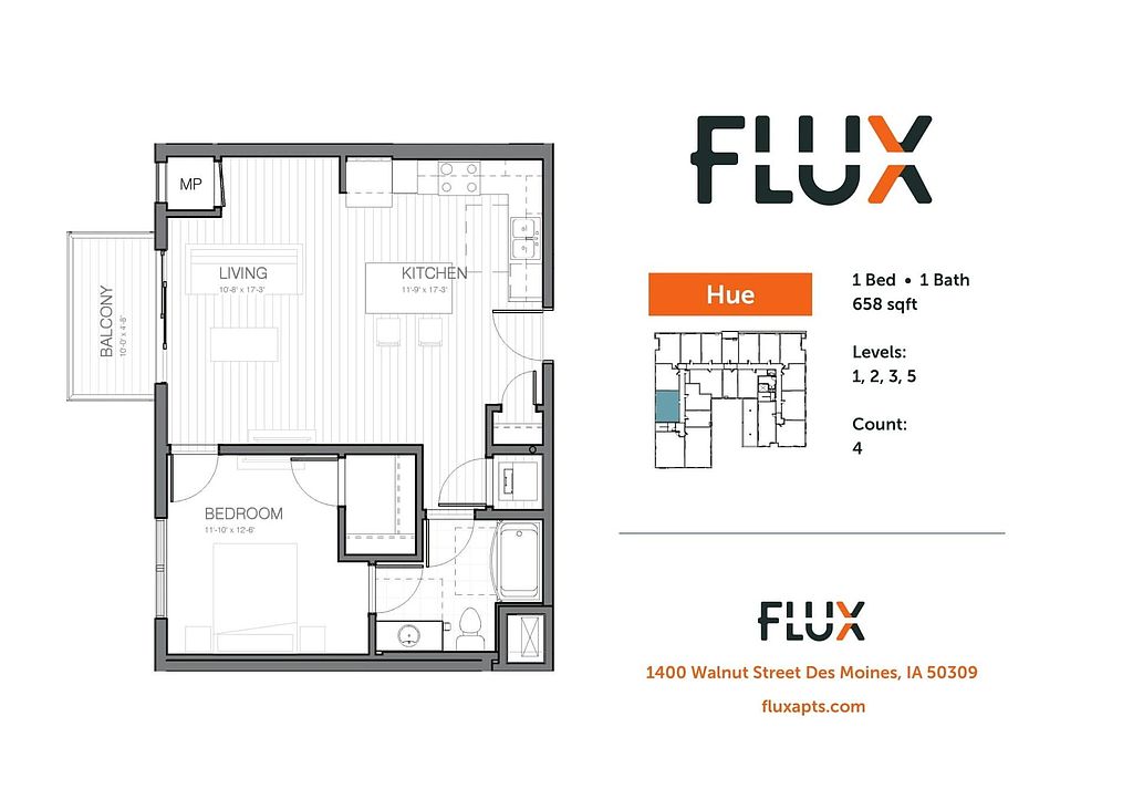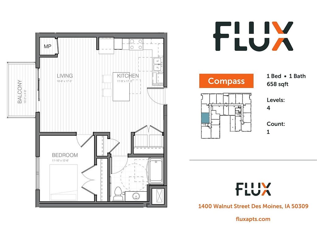 Flux is in the Downtown Des Moines neighborhood in Des Moines, IA.