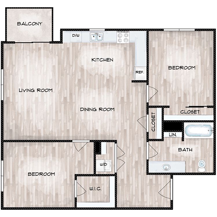 Our one, two, and three-bedroom floor plans were designed for comfort and style. Energy-star-rated appliances make meal prep easy, and hard surface flooring and an in-home washer and dryer make clean-up a breeze. Each of our apartments for rent has dual-pane windows and sliding door, a balcony or patio, and large closets. We can't wait for you to join us.