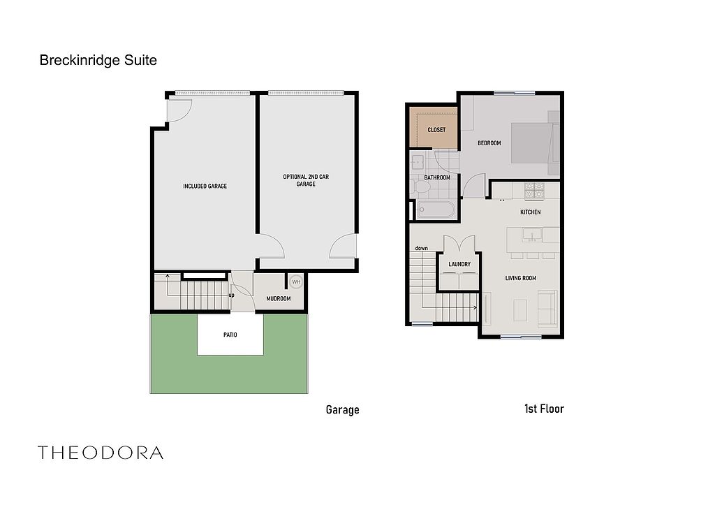 - The Theodora - Located on south side of Eau Claire on Fairfax street, enjoy your own private garage, your own washer/dryer and your own green space and front door. All units are side-by-side with no one living above or below you and shared walls are extra-insulated against sound. No shared hallways or elevators and your packages are delivered to your door, not a communal mailroom. Set your own garbage container right outside your garage for weekly pickup. Your food delivery drivers can drive right up to your door and ring your doorbell. Windows on north and south walls for great natural light and ventilation. Interiors include luxury vinyl flooring, modern kitchens with quartz countertops and stainless steel appliances, unique recessed strip light in ceiling and upscale fixtures in thoughtfully designed floor plans. No more 5am trips down an elevator to let your dog out, just let them out in your private backyard. Garages pre-wired for 240 volt car charging capability. Pet restrictions apply.