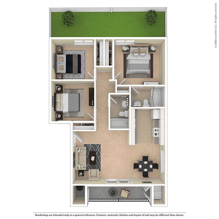 This 3x2 floor plan contains an additional Yard or Patio, varies.