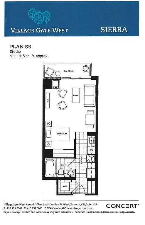 Sierra is located within Village Gate West, a master-planned community by Concert Properties, nestled in peaceful central Etobicoke near Islington Station. Village Gate West is situated on 3.7 acres and encompasses almost 1,000 rental homes that overlook a central landscaped plaza.