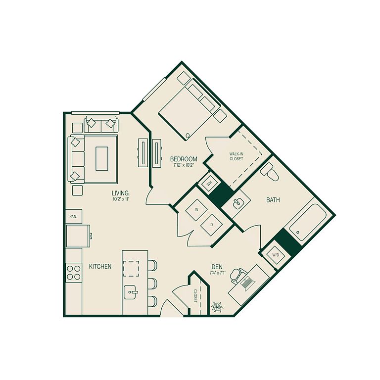 Price shown is Total Price. Residents are required to pay: At Move-in: Security Deposit (Refundable)($500.00/unit); Monthly: Natural Gas-3rd Party(Usage-Based). Please visit the property website for a full list of all optional and situational fees. Floor plans are artist's rendering. All dimensions are approximate. Actual product and specifications may vary in dimension or detail. Not all features are available in every rental home. Please see a representative for details.