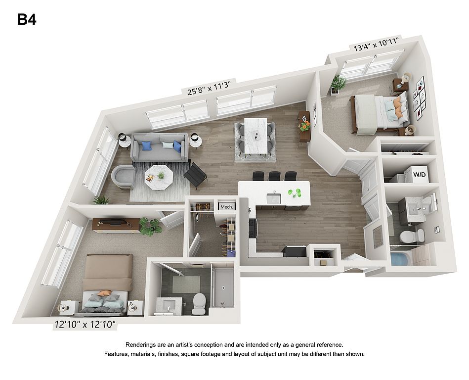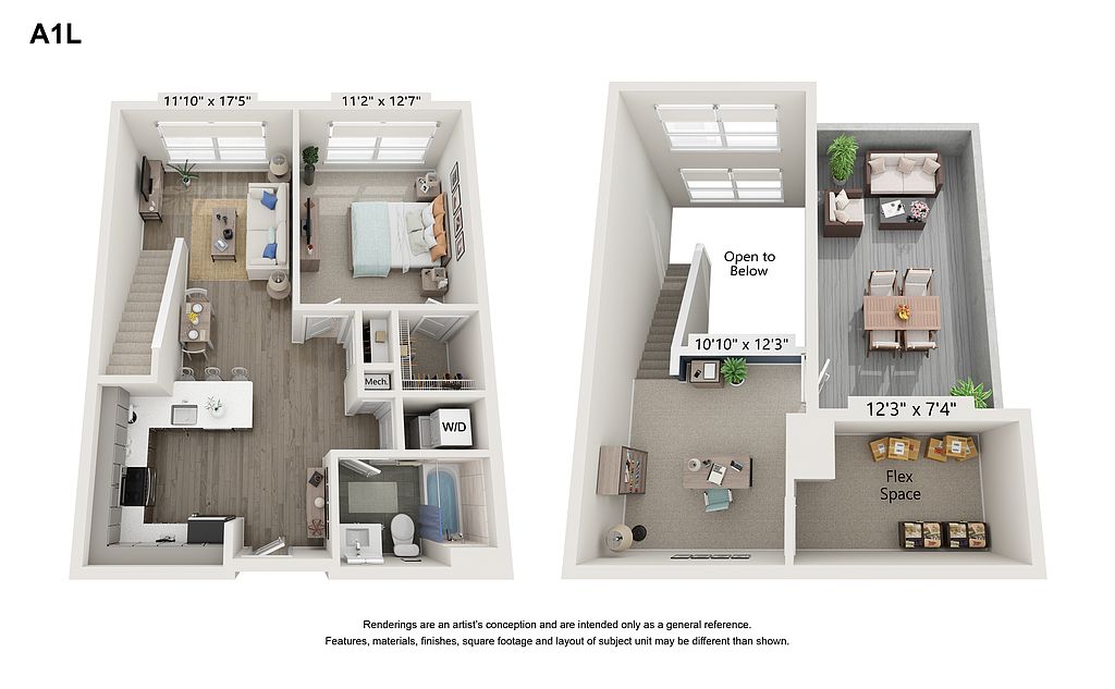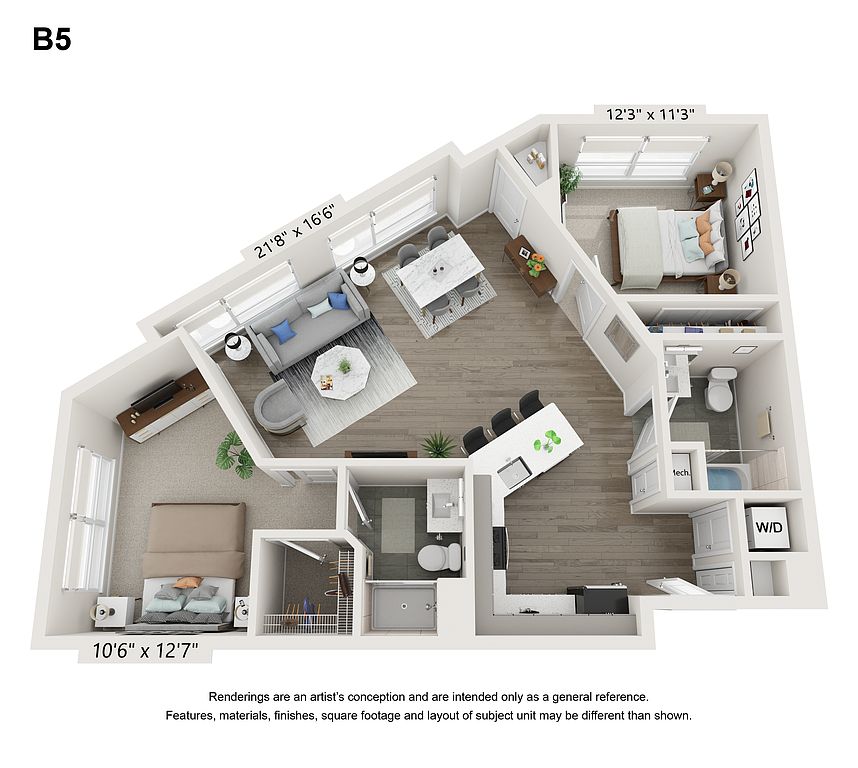 Hardwood-style plank flooringQuartz countertopsFloor-to-ceiling windowsFull-size washers and dryersStainless steel appliances