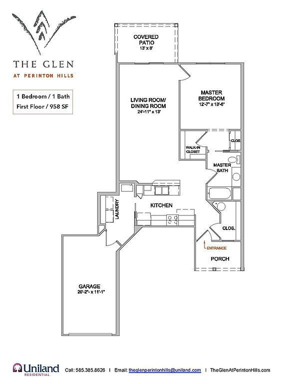 The Glen at Perinton Hills provides an abundance of benefits and features in a walkable community with a fitness center, and a handful of professional offices and light retail space. Our apartments offer generous closet space, your own in-unit laundry facilities, private entrances* and an attached garage*, you'll feel completely at home. First-floor units feature a covered patio and second-floor units offer sheltered balconies. The modern kitchens contain maple cabinets, quartz counter tops and stainless steel appliances. *Select units