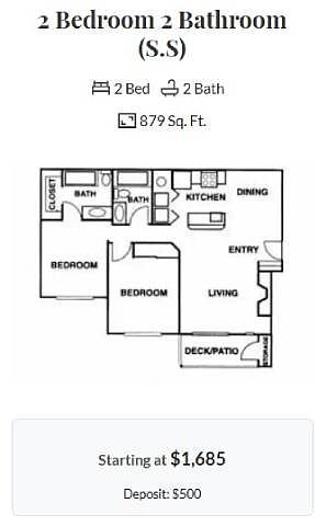 - CatsAllowedOne-time cat fee$300Cat deposit$300