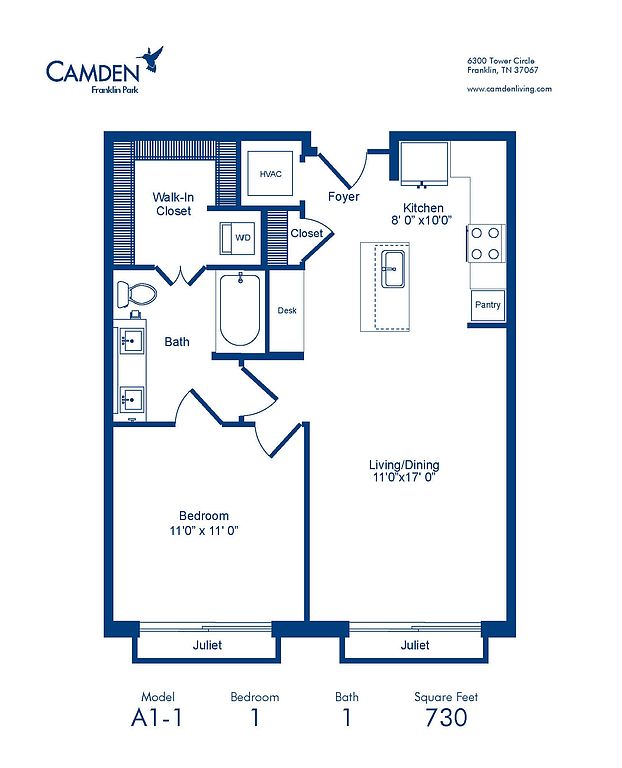 We offer self-guided, live video, and team member tour options. Please call 24 x 7 to schedule. Camden Franklin Park features modern one, two, and three-bedroom apartment homes in the heart of Franklin. Surrounded by both green space and a growing business park, Camden Franklin Park apartments are right where you want to be. Just a quick drive from our apartments in Franklin, enjoy trendy restaurants and endless shopping options in Thoroughbred Village or Cool Springs Galleria. Head over to nearby coffee shop, Honest Coffee Roasters, explore Historic Downtown Franklin, or catch some local live music at Gray's on Main or one of the many "back porch" venues around Franklin and Williamson County. Conveniently located off I-65, Camden Franklin Park apartments are only a 20-minute drive to Nashville if you're commuting. Get some fresh air and take in Franklin's natural beauty at nearby Liberty Park and Marcella Vivrette Smith Park or explore the 3+ miles of walking trails and boardwalks just across the street in Franklin Park. Camden residents can take advantage of an exclusive discount with CORT to rent furniture and accessories for your apartment home. We partner with Vero, a third-party screening company, to verify the identity and income of all applicants. Pricing and availability are subject to change until a quote is saved.