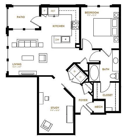 - Open Concept Studio, One & Two Bedroom Floorplans