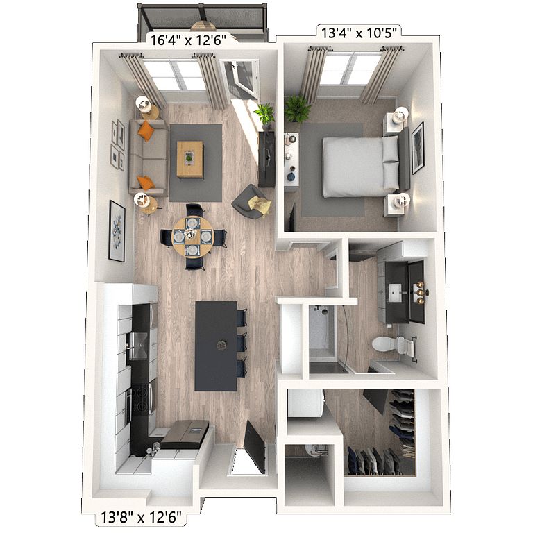 Stylish sophisticated homesResort-style poolShaded pet parkSpacious walk-in closetsModern kitchens