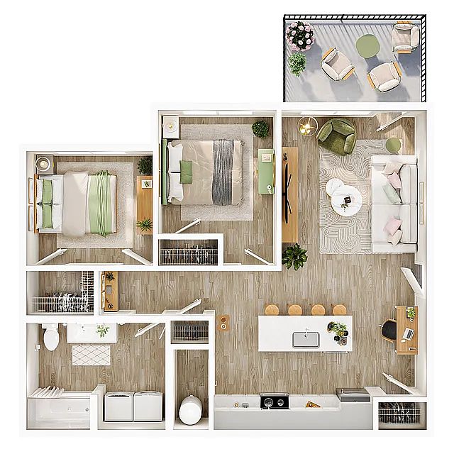 1021 2 bd, 1 ba | 877 | Now | $1,135 |