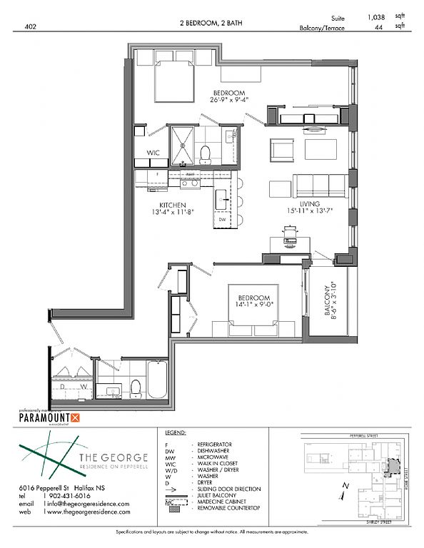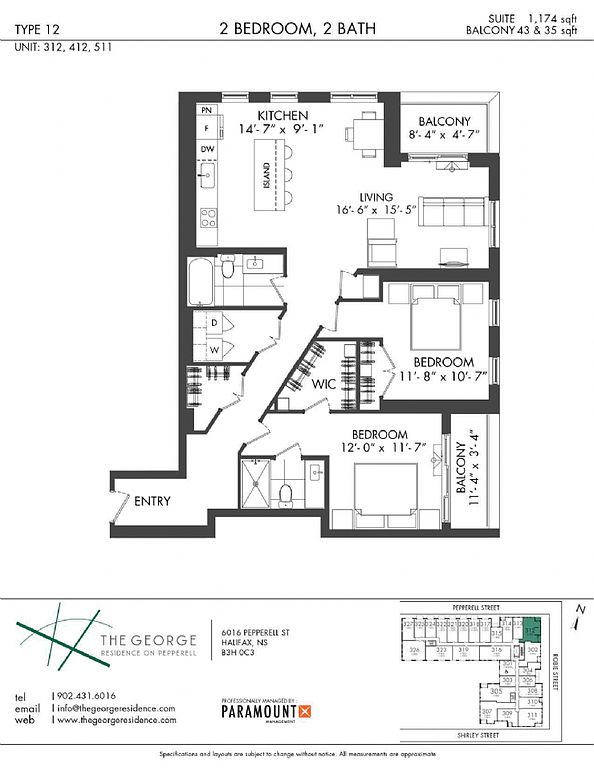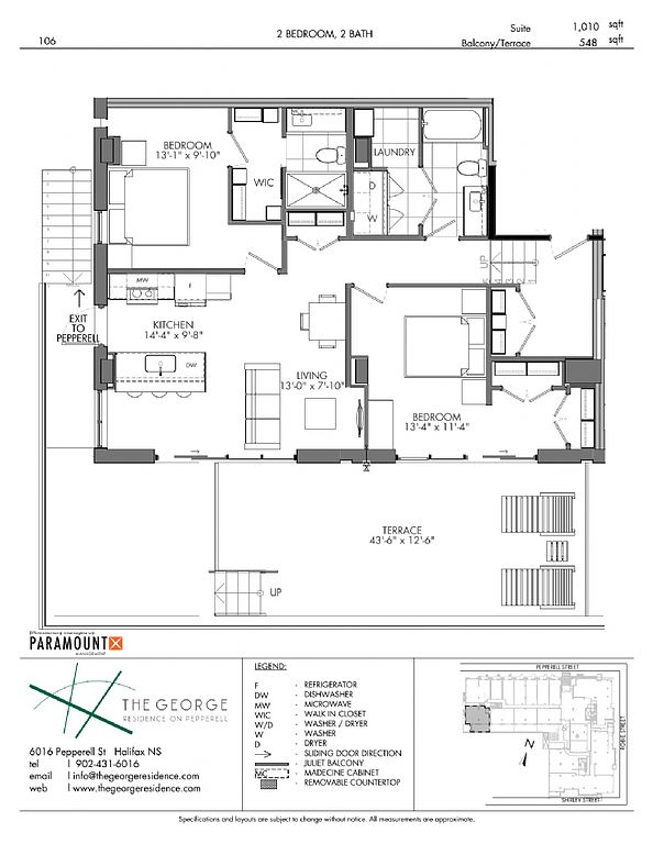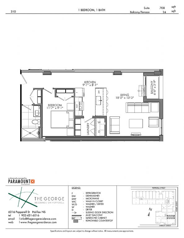 The George offers Haligonians the best of both worlds: the opportunity to reside in a stylish modern building nestled in a vibrant downtown neighbourhood while also living just steps away from abundant green space. On the corner of Robie and Pepperell Streets, and only one block from Quinpool Road and the Halifax Common, The George is ideally located and designed for contemporary urban life. Comprised of six townhouse units and 166 light-filled suites, the building is as functional as it is beautiful. Residents will appreciate the elegant designer touches in every space, superb building amenities, and walkable access to Halifax's trendiest neighbourhoods.