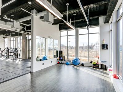 Large finished ground-level rec room ideal for a home theater, gym, or game room