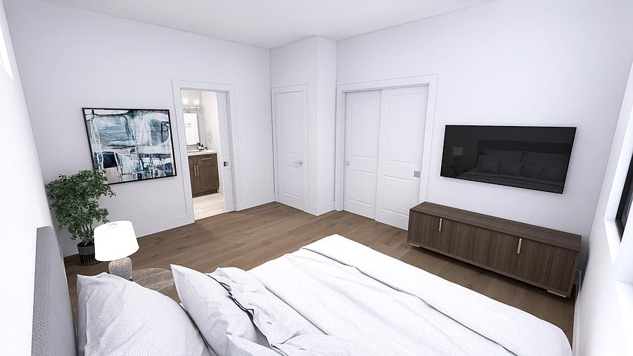 Each home features an elegantly appointed bathroom designed for comfort and convenience, complete with a bathtub and shower. High-end finishes include tile flooring by Dal Avery and Emser Sterlina, along with Piedrafina stone slabs for both vanities and shower surrounds, adding a sophisticated touch to these serene spaces.