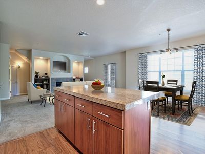 In-unit washer and dryerChocolate cabinetsHardwood flooring throughoutAlmond cabinetsBlack quartz countertopsIndustrial-styled apartment homesWhite quartz countertops