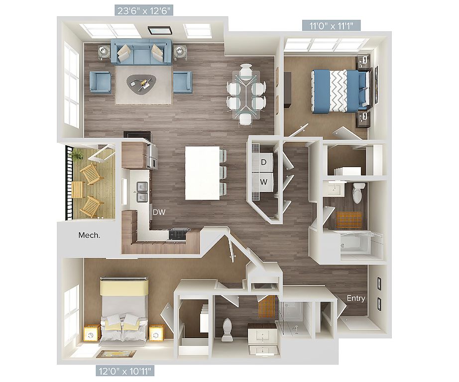Thoughtfully designed living spacesQuartz countertopsOutdoor poolFour outdoor courtyardsStainless steel appliances