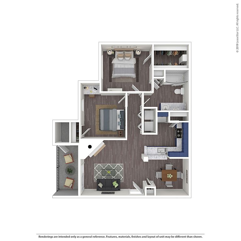 Central heating and coolingPrivate patioLarge windowsHardwood-style flooringFull-sized washer and dryerSpacious walk-in closetGalley-style kitchenLarge primary bedroom