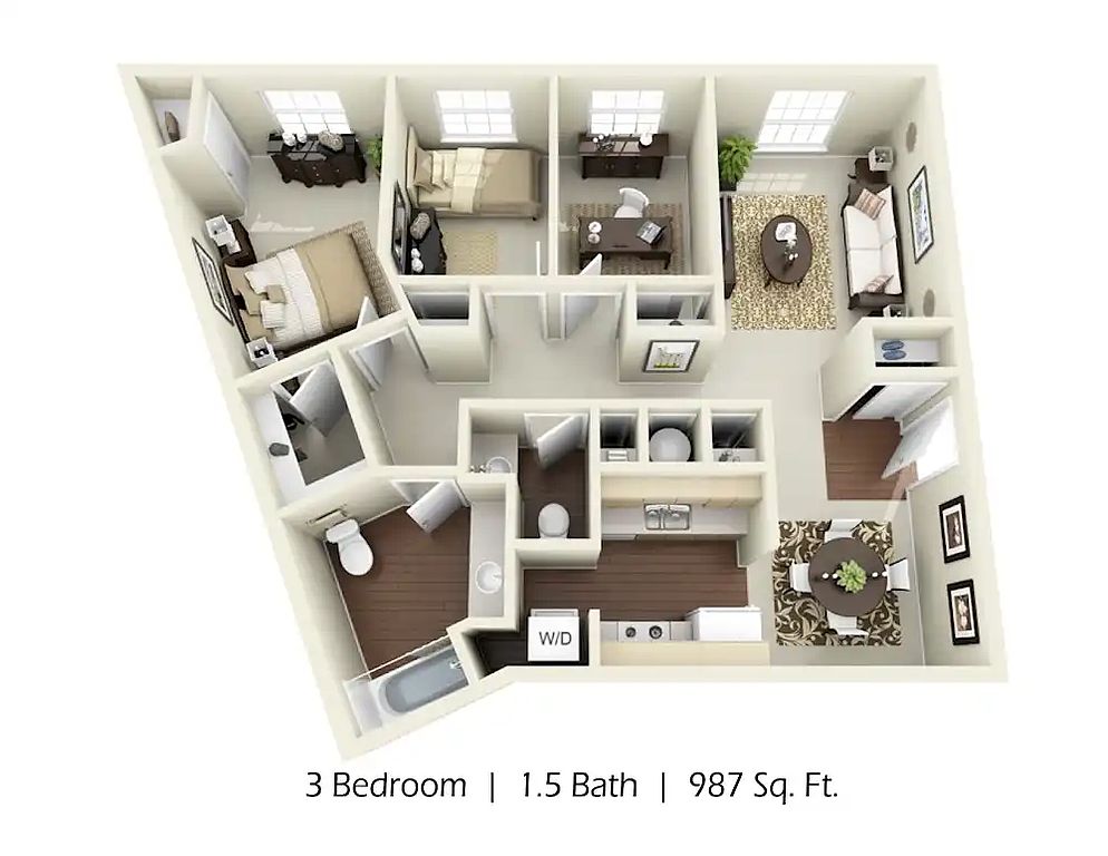 In-unit washer and dryerFully equipped kitchensWalk-in closets