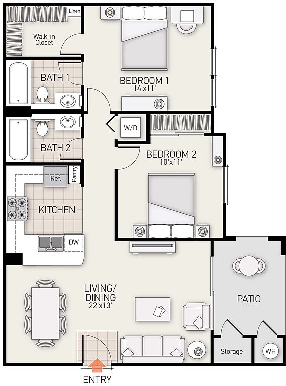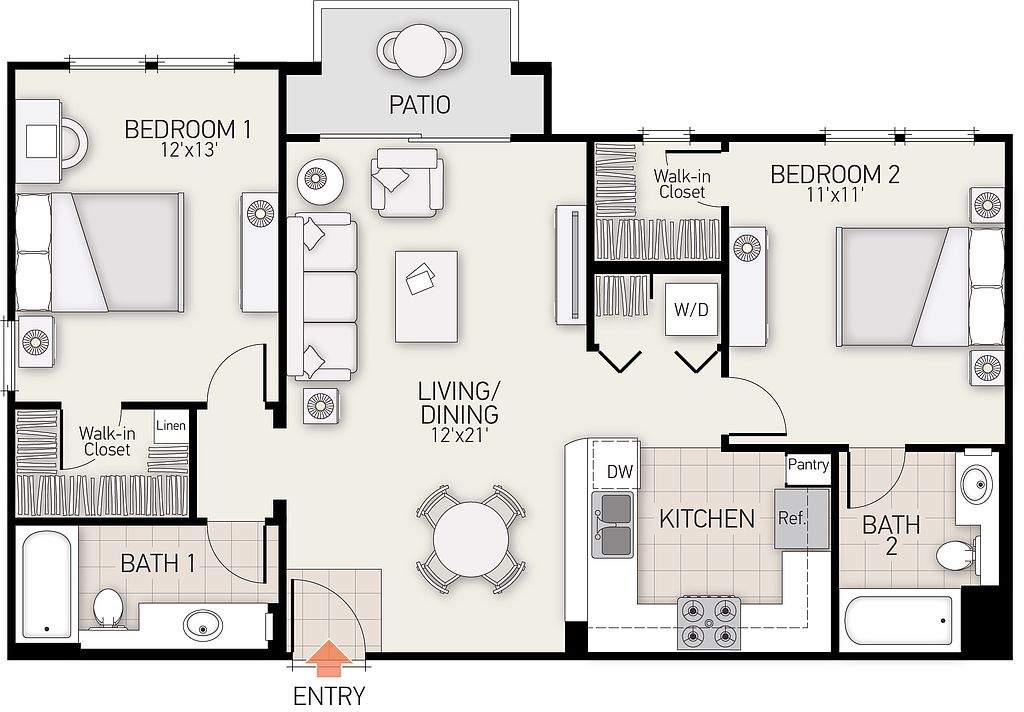 The schools assigned to Serrano Apartment Homes include Hicks Canyon Elementary School, C. E. Utt Middle School, and Arnold O. Beckman High School.