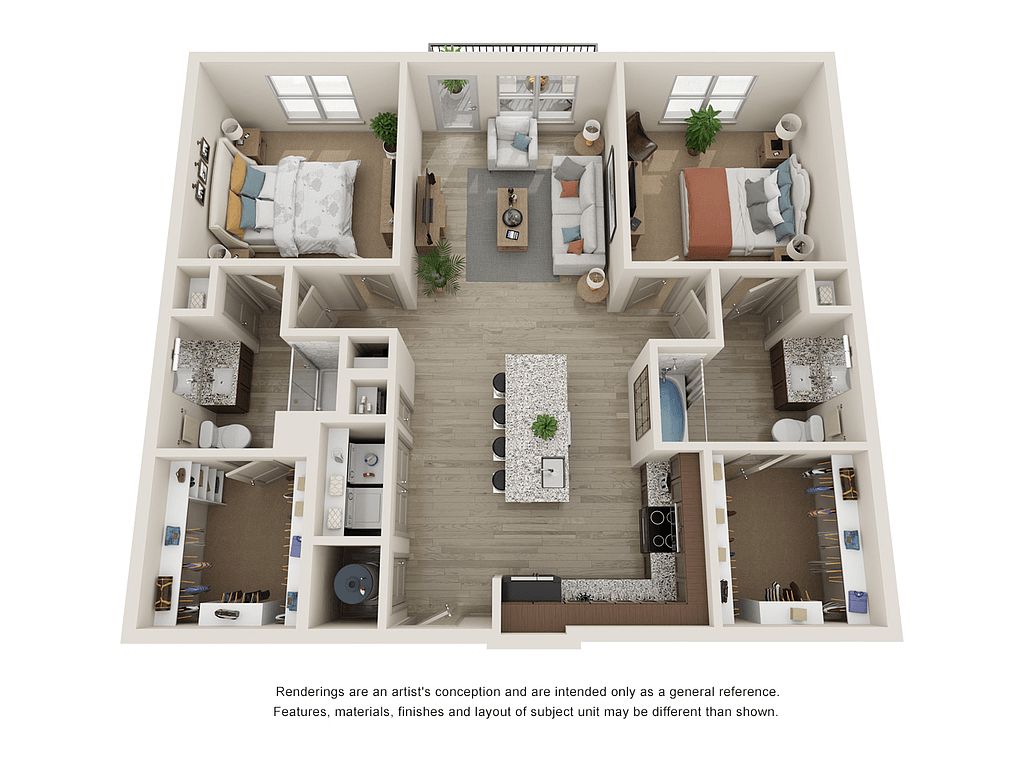 Generously sized private balconySpacious apartment homePremium appliancesSleek granite countertopsSpacious floor plansResort-style swimming pool
