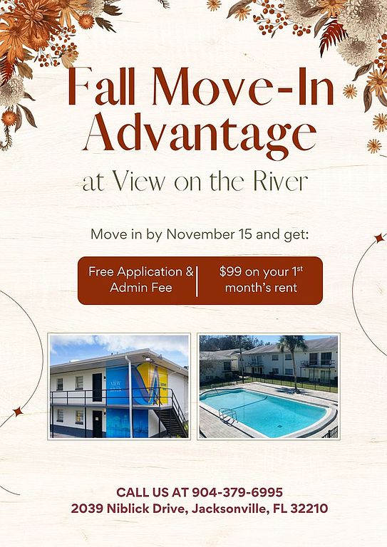 Welcome to View on the River, located in beautiful Jacksonville, FL. Our apartment community offers convenient on-site management and maintenance services to ensure your needs are always met promptly. With our user-friendly online portal and payment options, managing your residency is a breeze. Take a dip in our refreshing pool or enjoy a leisurely stroll along the river nearby. We are also proud to be a pet-friendly community, so your furry friends are welcome to join you in your new home. Experience the convenience and comfort of View on the River today!