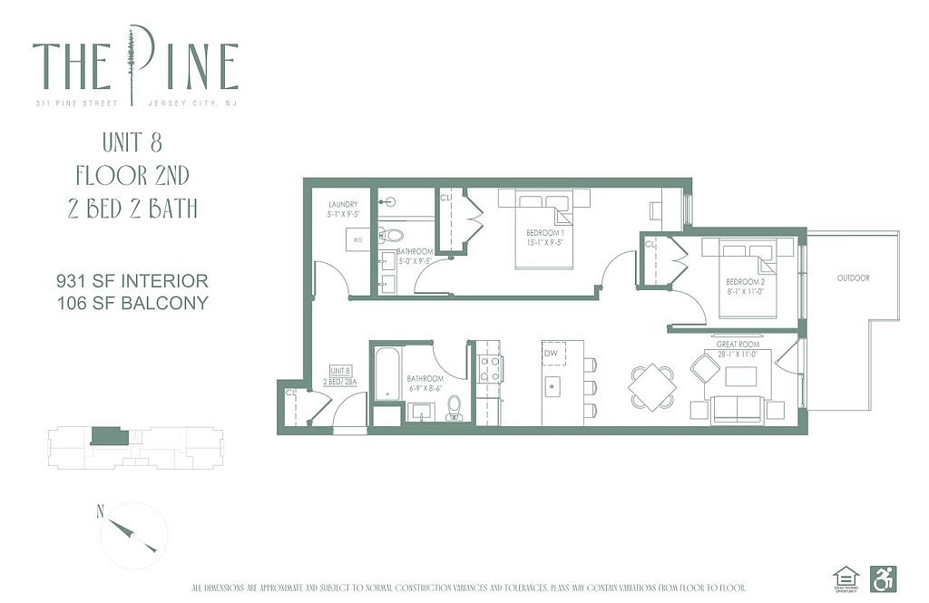 Building amenities include a cozy library, co-working space, free bike storage, on-site laundry, and an attached garage. THE PINE blends tranquility and modern convenience offering peaceful living just minutes from the energy of Jersey City and NYC.