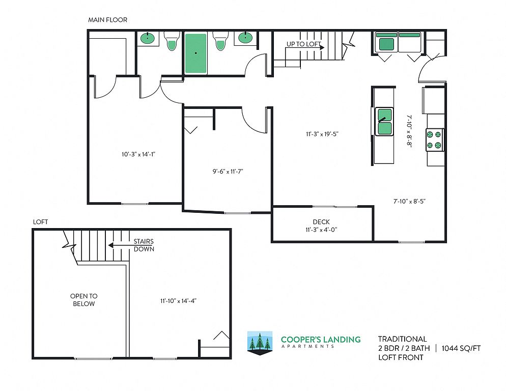 Experience the comfort of Cooper's Landing Apartments, just 10 minutes from downtown Kalamazoo. Our spacious homes offer walk-in closets, in-unit washers and dryers, private patios or balconies, and select upgrades like vaulted ceilings and granite countertops. Every apartment includes an attached or detached garage, with water, sewer, and trash removal included.