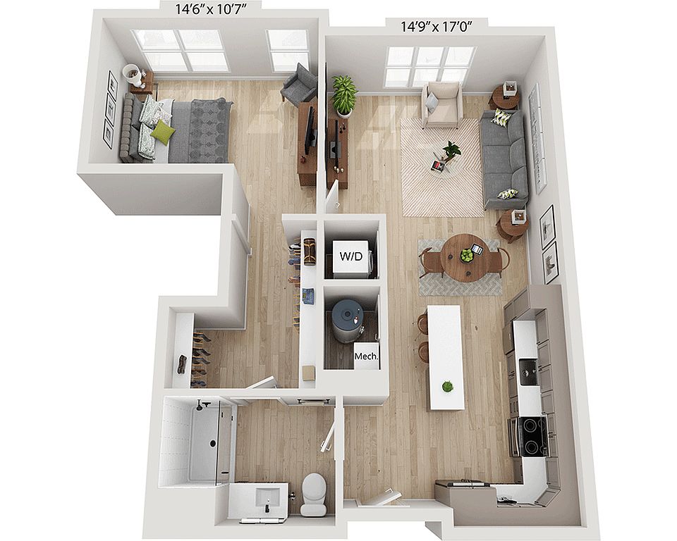 - Wood: Wood plank flooring