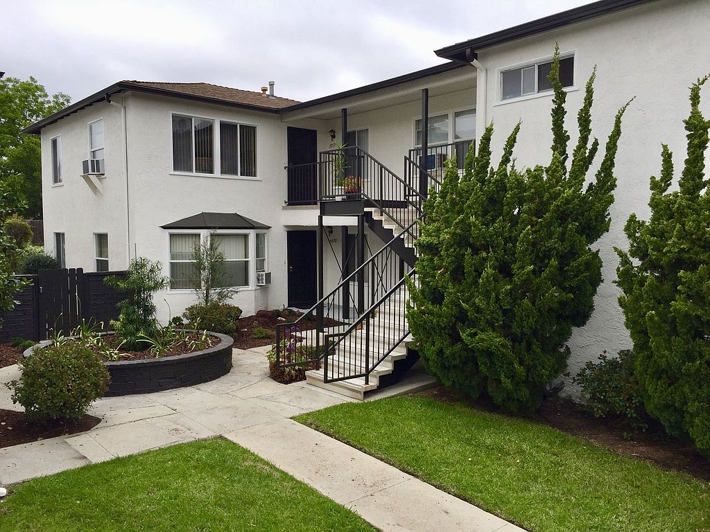 Upstairs one bedroom located in La Mesa in a garden setting small complex within walking distance to the village of La Mesa shops, coffee and restaurants. This sunny apartment has plenty of storage space with new paint and blinds and original hardwood flooring throughout along with lots of old world charm. This non smoking complex has 2 onsite laundry rooms and comes with one parking space behind the complex. We accept one small pet under 20lbs with an additional pet deposit of $250. Water, trash and sewer are paid. One Year lease term only. Email for Open House times and dates. 7774 1/2 University Avenue.