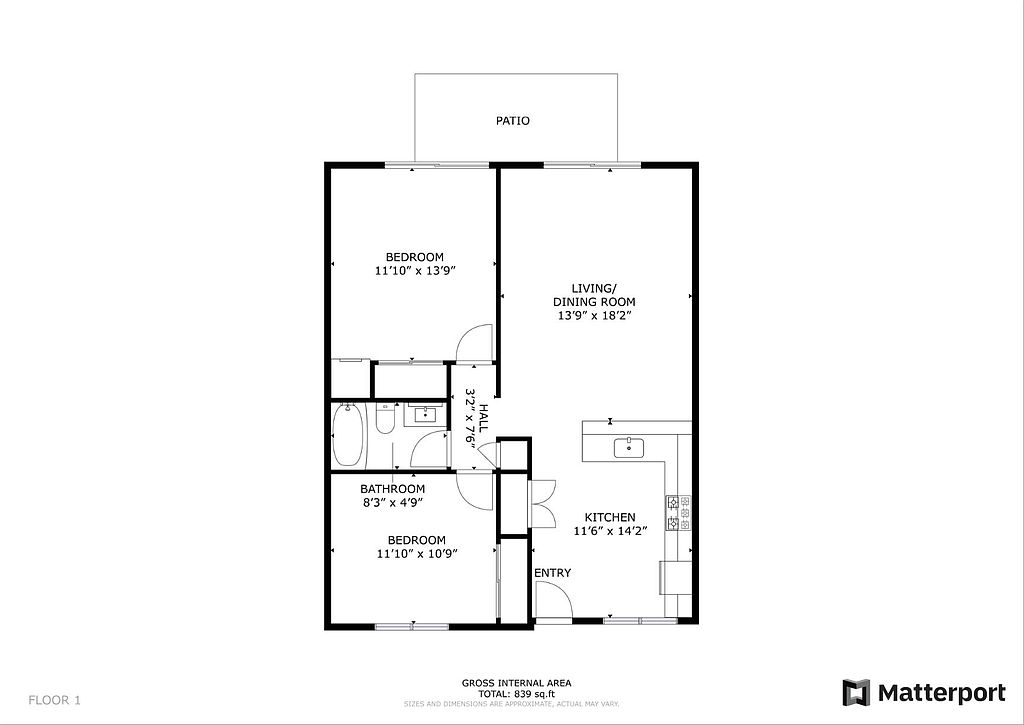 2 bd, 1 ba