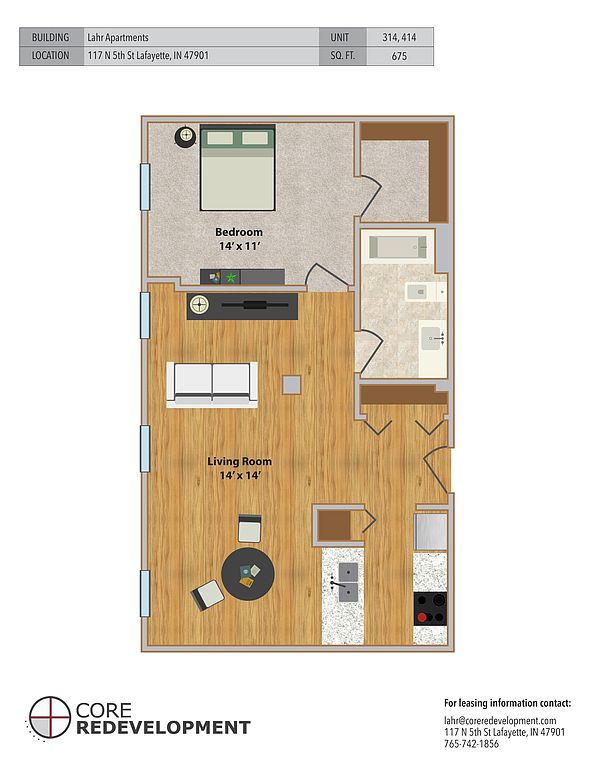 Lahr Apartments is in the Downtown neighborhood in Lafayette, IN.