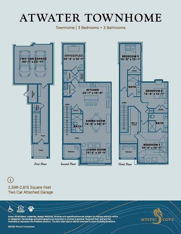 Inside your Mystic Cove townhome, you'll find modern floor plans, designer kitchens, and spacious bedrooms with walk-in closets, providing the perfect blend of comfort and style. Convenience is key, with features like an attached garage, full-size washer and dryer, and double sink vanities in the bathrooms. Plus, ADA adaptable features ensure accessibility for all residents.
