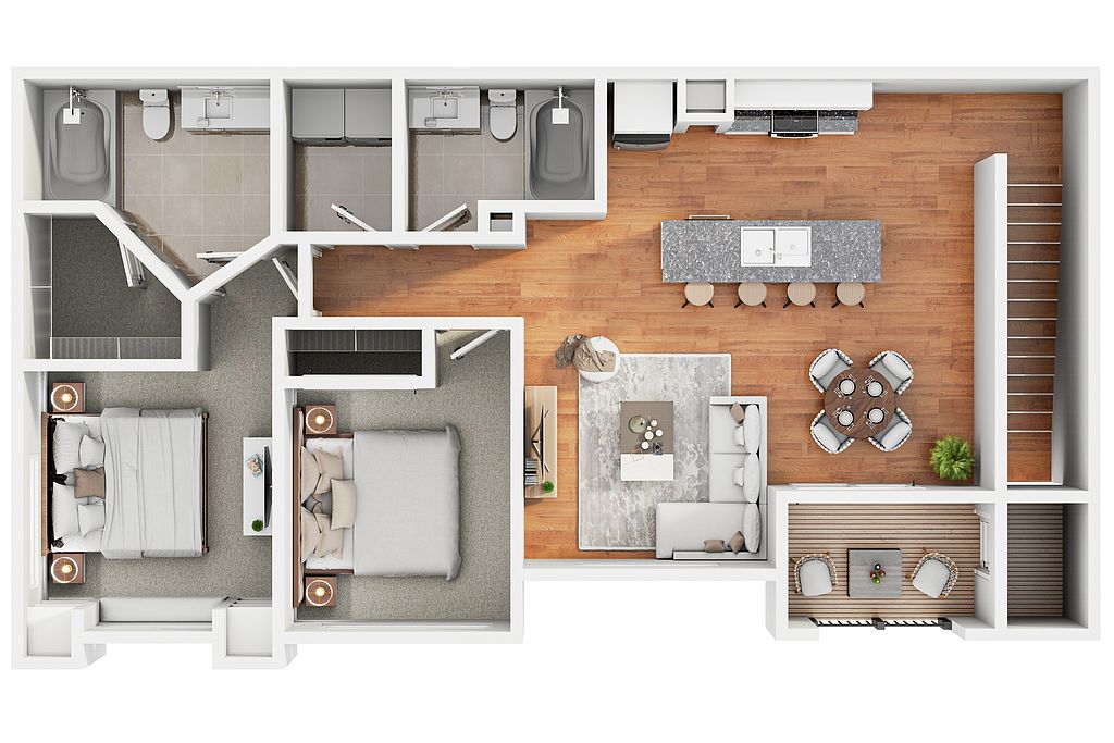 Plank-style flooringUpgraded light fixturesWalk-in closetsFull-size washer and dryerGourmet kitchenPersonal patio or balconyStainless steel appliances