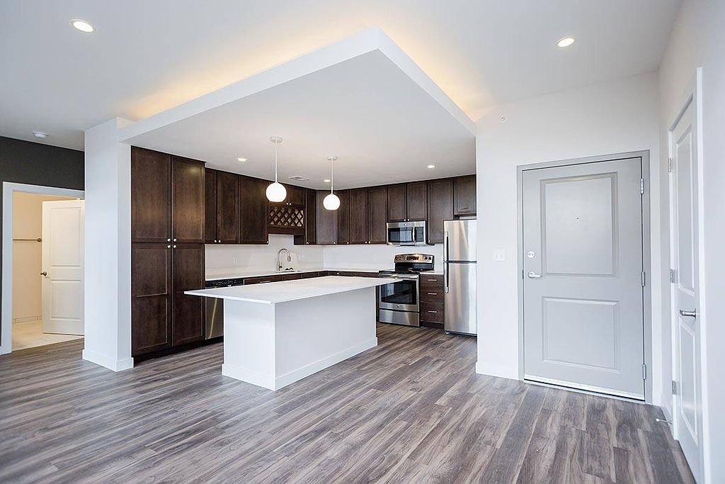 Quartz countertopsBuilt-in wine rackWasher and dryer in-unitStainless steel kitchen appliances