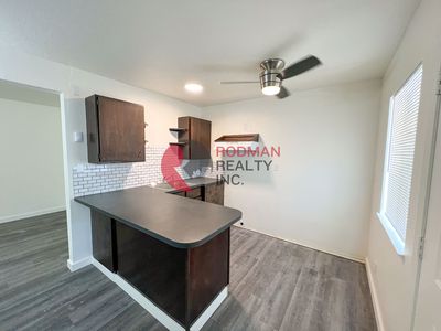 This two bedroom, one bathroom apartment is incredibly spacious and has amazing updates thorough. The living room is substantial, with tons of windows for natural light and a small adjoining area that would be ideal for an office. The kitchen has gorgeous lighting, butcher block counter tops, and plenty of cabinetry. There is a large pantry closet for additional storage. Both bedrooms are spacious with ample closet space. The bathroom features new cabinetry, countertops, and lights. There is a separate area for laundry with washer and dryer hook ups. There is a covered carport for parking out back as well as a storage shed.