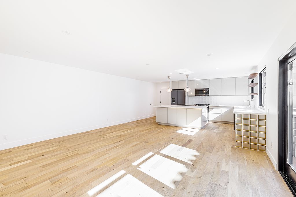 Hardwood Flooring, washer, and dryer in unit! Balcony, Quartz Counter Tops, Brass Finishes, Walk in Closets, Nest controlled Thermostat (Central AC and Heat), as well as a Ring Doorbell. Kitchen is equipped with stainless steel appliances: Fridge, Stove/Oven, Microwave, and Dishwasher.