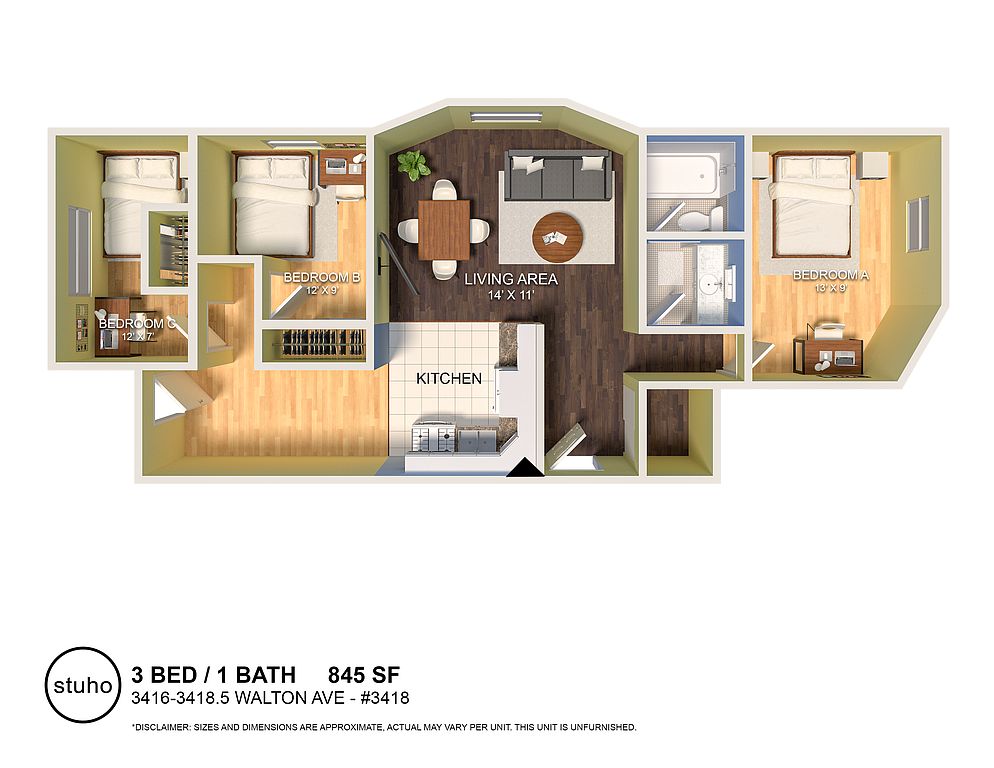 3416 3 bd, 1 ba | 843 | Aug 19 | $2,895 |