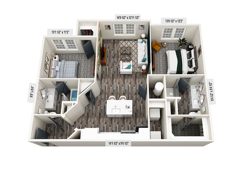 - Double Vanities In 2 & 3 Bedroom Floor Plans