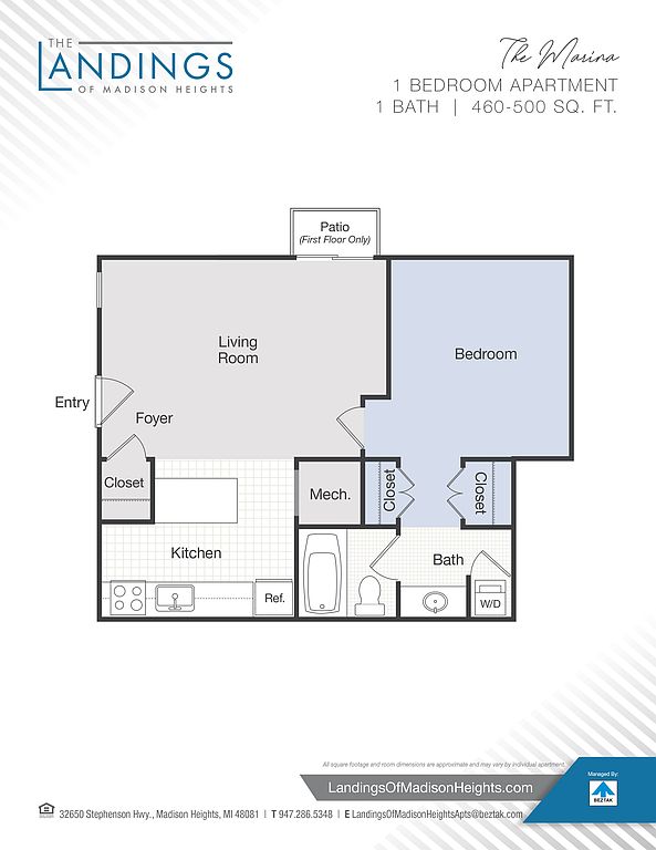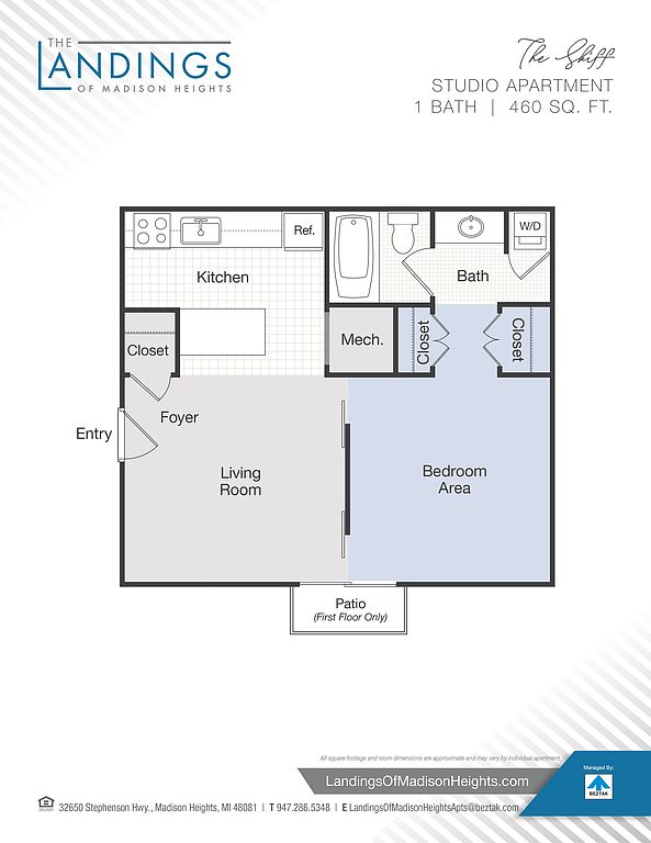 Experience modern living at The Landings at Madison Heights, a premier pet-friendly community where comfort meets convenience. Enjoy spacious studio, one-, and two-bedroom floorplans featuring unique multi-level designs, in-home washer and dryer, elegant countertops, stainless steel appliances, large closets, and central air and heat for year-round comfort. The community offers a resort-style swimming pool, cozy outdoor lounge with fire pit, expansive fenced dog park, and will soon feature a state-of-the-art fitness center and modern community clubhouse.Nestled in the heart of Madison Heights, MI, you'll find a shopper's paradise with Oakland Mall, Costco, and Target all nearby, plus local restaurants and cafes just around the corner. When it's time to unwind, enjoy local parks or play a scenic 9-hole round at Red Oaks Golf Course. With easy access to I-75 and I-696, you're minutes from Royal Oak, Ferndale, and all that Metro Detroit has to offer.This property is managed by Beztak.