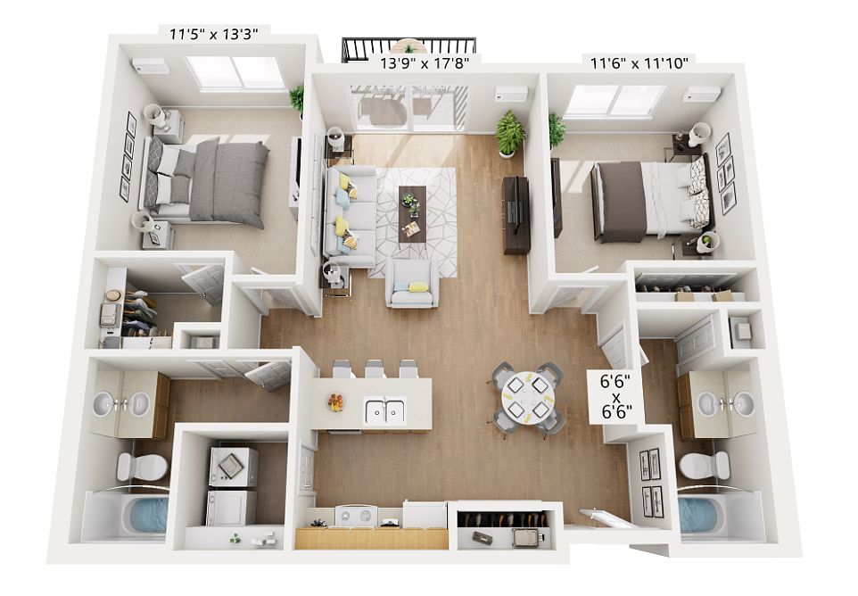 1 month of apartment rent free by signing a 6-month lease with washer and dryer included.