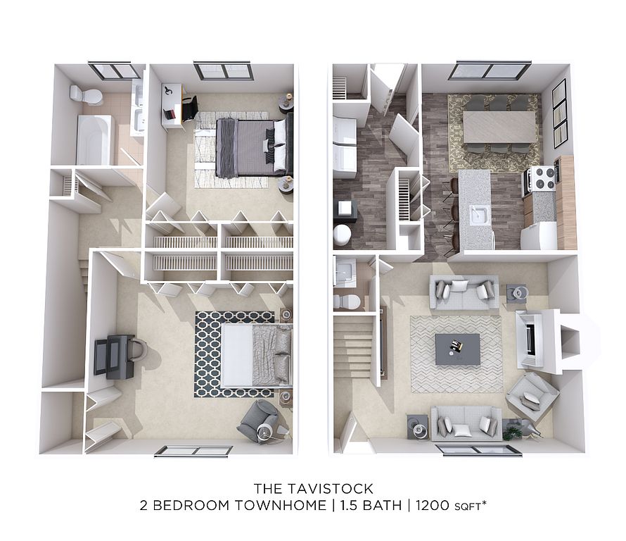 - Special offer! Large 2 bedroom townhome featuring private entrance, some with upgraded kitchen and bath with w/d, spacious living and fireplaces (in select units) Great community with amenities galore