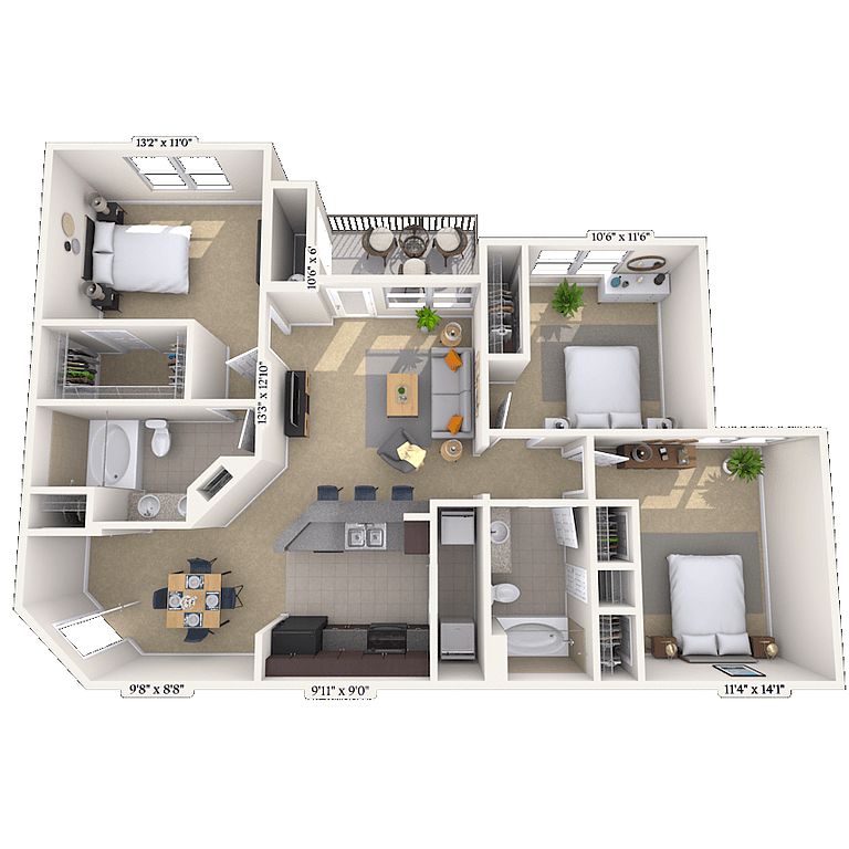 1-3 beds