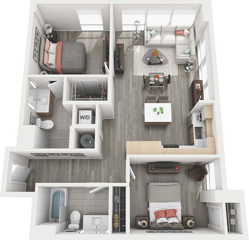 - High-end Appliances: Stainless Steel Appliances in Select Units